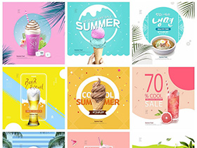 果汁饮料冰淇淋奶茶冷饮甜品果茶创意元素海报PSD模板素材设计