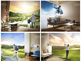 户外运动高尔夫滑雪骑行徒步登山创意PSD元素海报模板素材设计