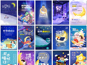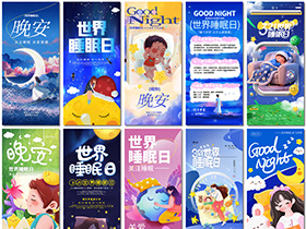 世界睡眠日夜晚晚安你好日签励志儿童公益PSD海报设计元素材模板