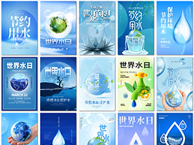 世界水日水监测日水质节约用水保护水资源PSD海报设计元素材模板