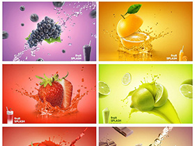 动感水花水流水果切割鲜榨果汁背景创意元素海报模板素材PSD设计