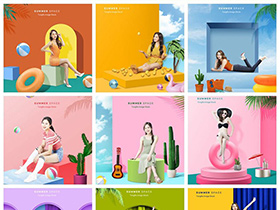 夏日泳池旅游度假橱窗展台购物促销创意PSD元素海报模板素材设计