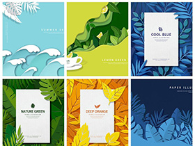 剪纸风格树叶森林热带植物海浪花丛创意元素PSD海报模板素材设计