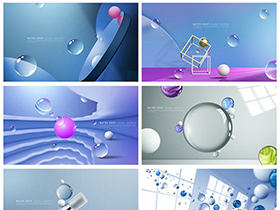 水泡水花化妆保养护肤品美妆几何创意元素海报模板PSD素材设计