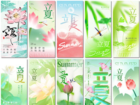 立夏莲藕荷花蜻蜓湖水蝉夏天二十四节气PSD海报设计元素材模板
