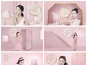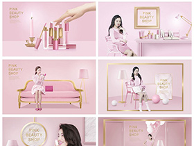 女性美妆直播间粉色保养护肤化妆品创意元素海报模板PSD素材设计