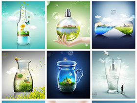 水杯水瓶植物花朵自然环保春天合成创意元素海报模板素材PSD设计