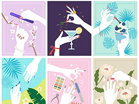 美妆美甲指甲油玫瑰花饮品插图插画创意元素AI海报模板素材设计