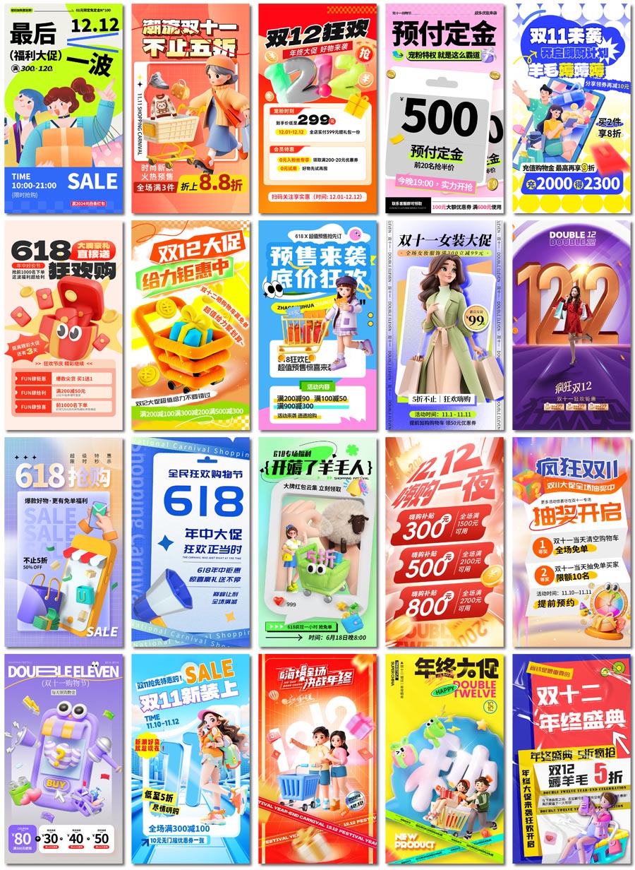300套618双11双12海报PS格式模板素材设计