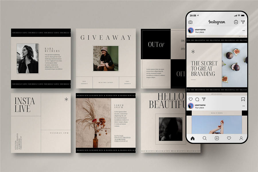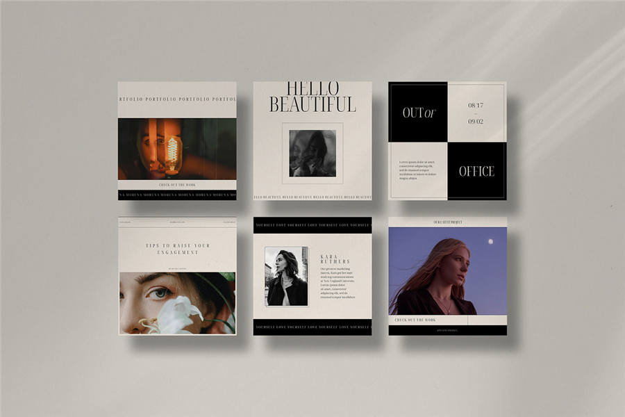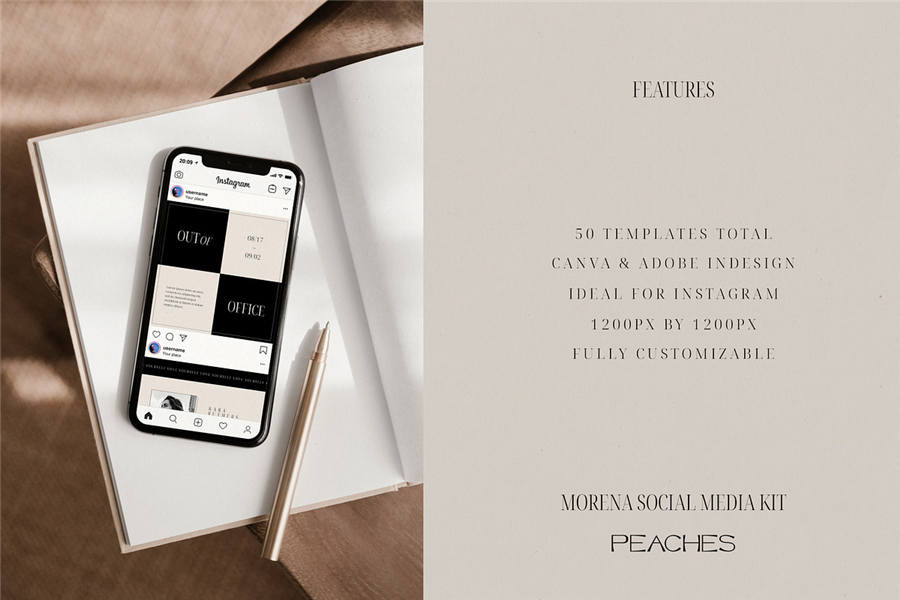 Morena Instagram 套件包含 50 个独特的模板,让您轻松创作内容。您可以根据自己的喜好轻松自定义模板,打造令人惊艳的动态。