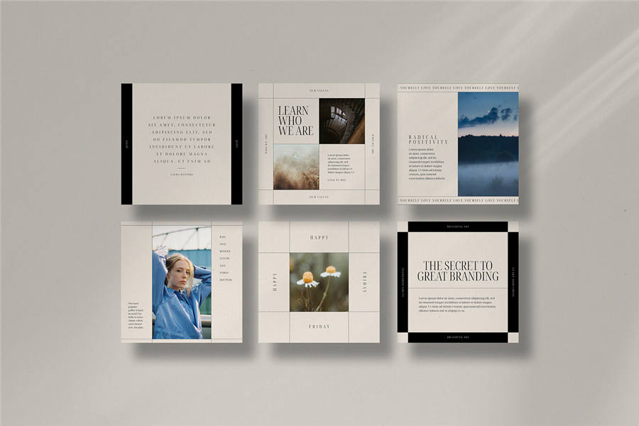 文件中的所有内容均可自定义,从字体、颜色到形状。只需进行一些简单的更改,即可快速轻松地将这些帖子转换为您动态消息中的品牌内容。