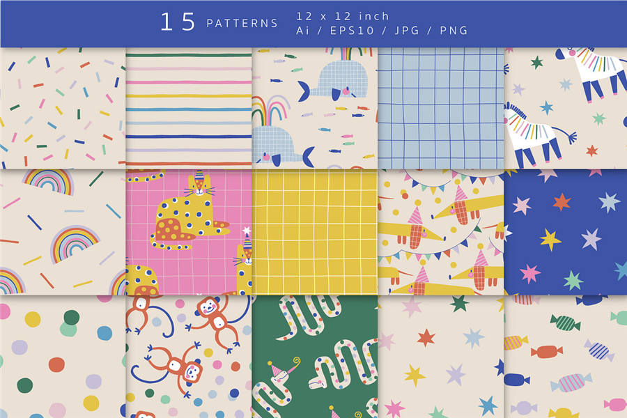 15 种无缝图案(瓷砖尺寸 12 x 12 英寸)有以下可供选择: