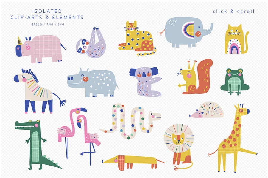 100 多种剪贴画和元素可用于: