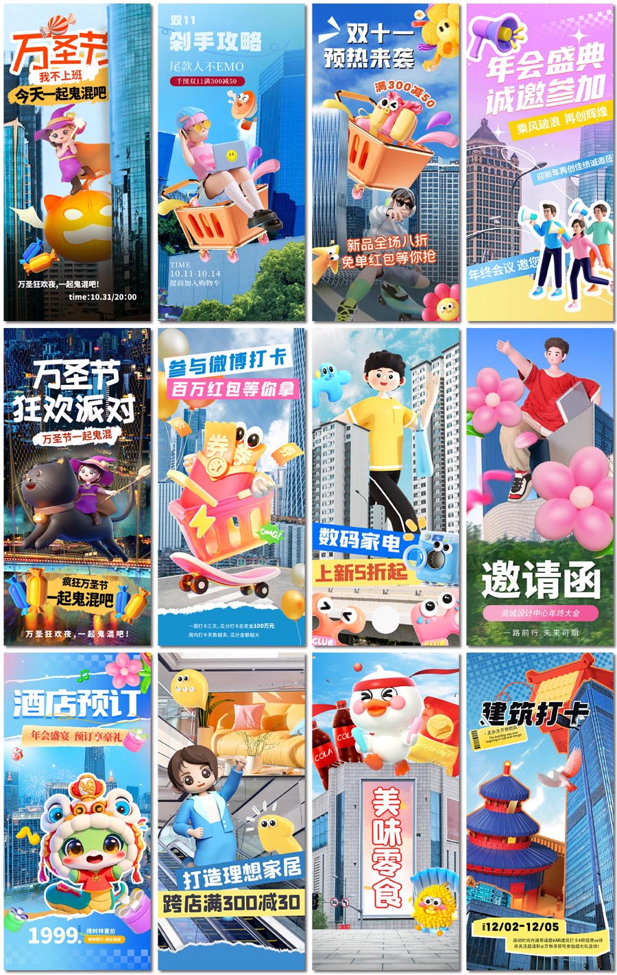 AR幻象风城市活动商场购物商圈玩乐零食PSD海报设计元素材模板