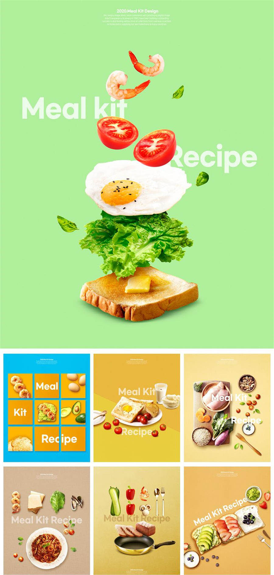 餐饮美食轻食蔬菜水果早餐面包吐司创意元素PSD海报模板素材设计