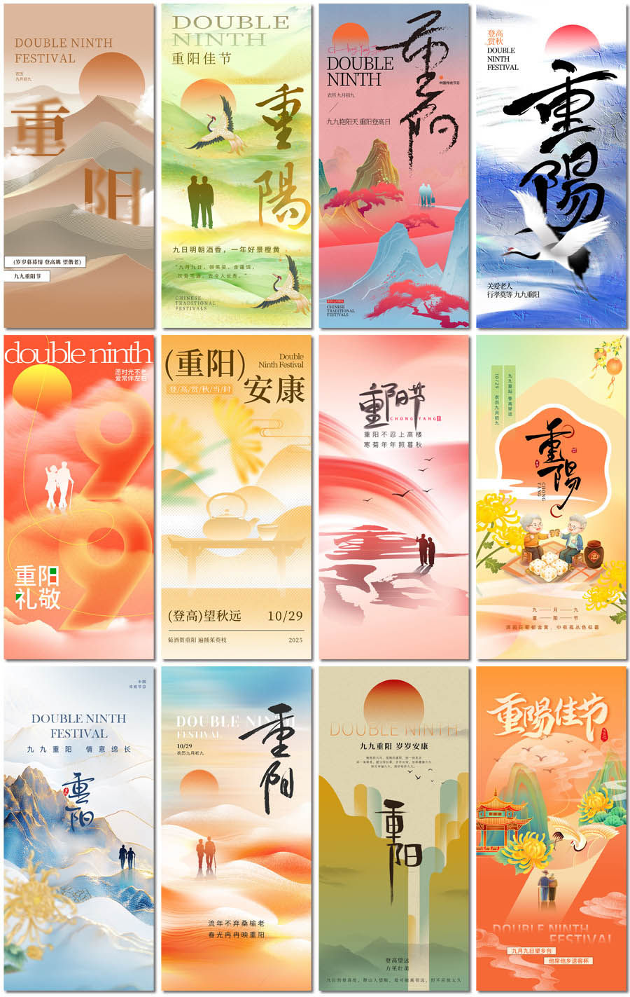 重阳节老人节登高赏菊花古典山水传统文化PSD海报设计元素材模板