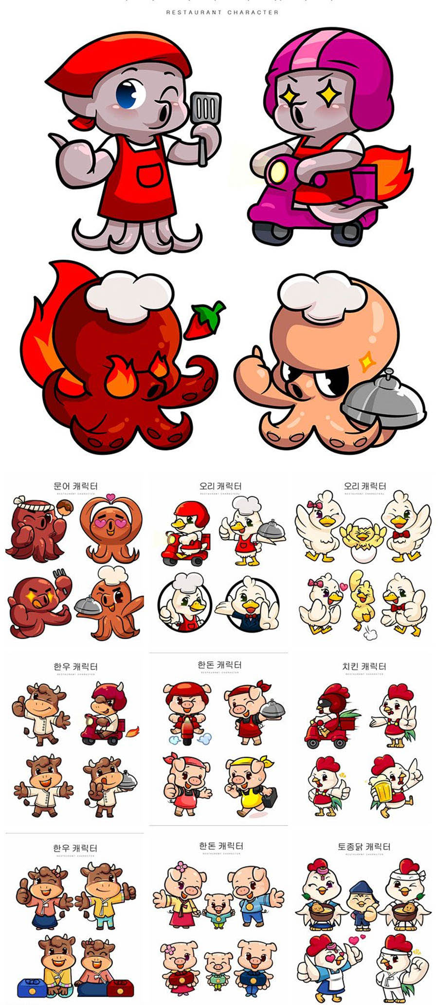 小动物鸡牛猪章鱼餐饮吉祥物表情包创意元素海报模板AI素材设计