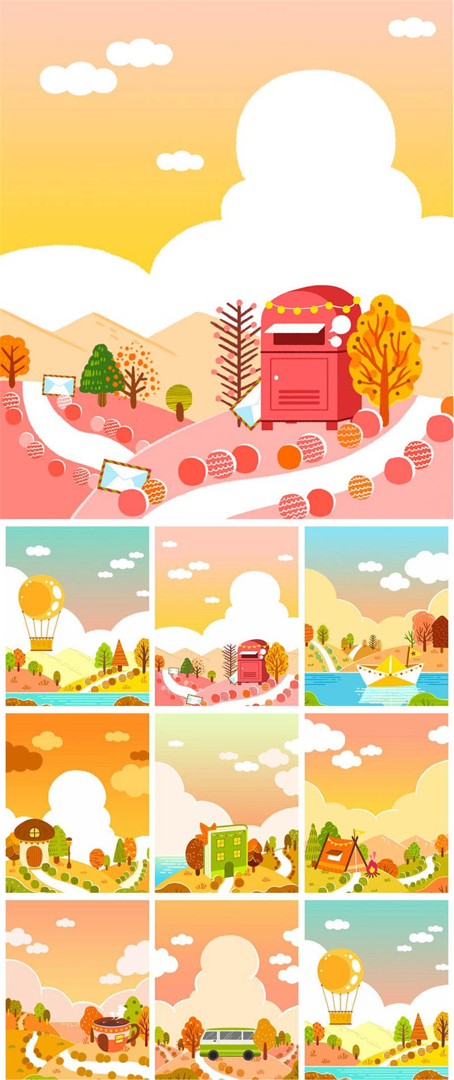 8款秋天秋季风景景色插画PSD素材