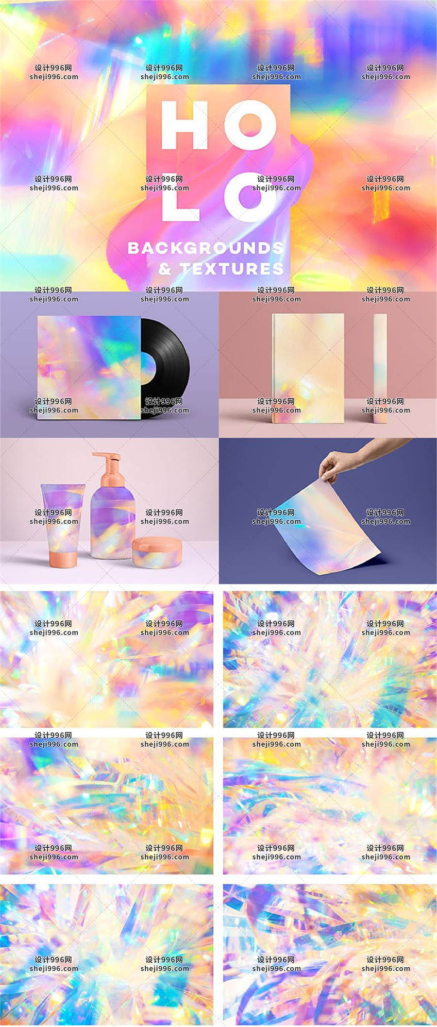 水晶梦幻渐变镭射全息色彩底纹背景创意元素海报模板素材JPG设计
