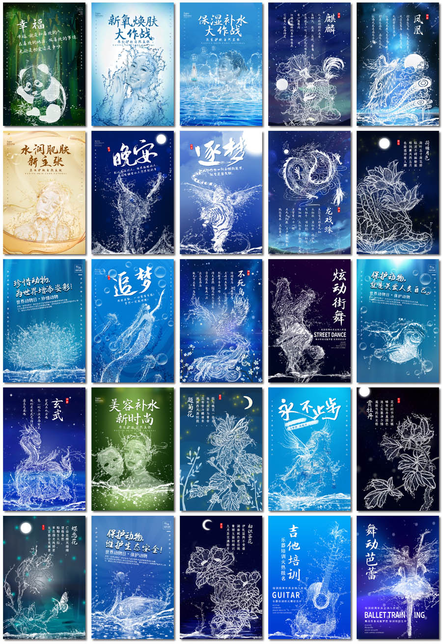 水形物语海洋之灵液体水花创意合成动物人PSD海报设计元素材模板