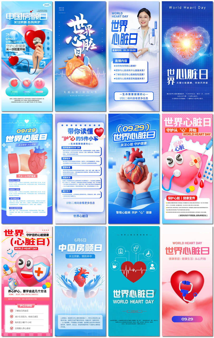 世界心脏日中国房颤日心脏健康医疗公益PSD海报设计元素材模板
