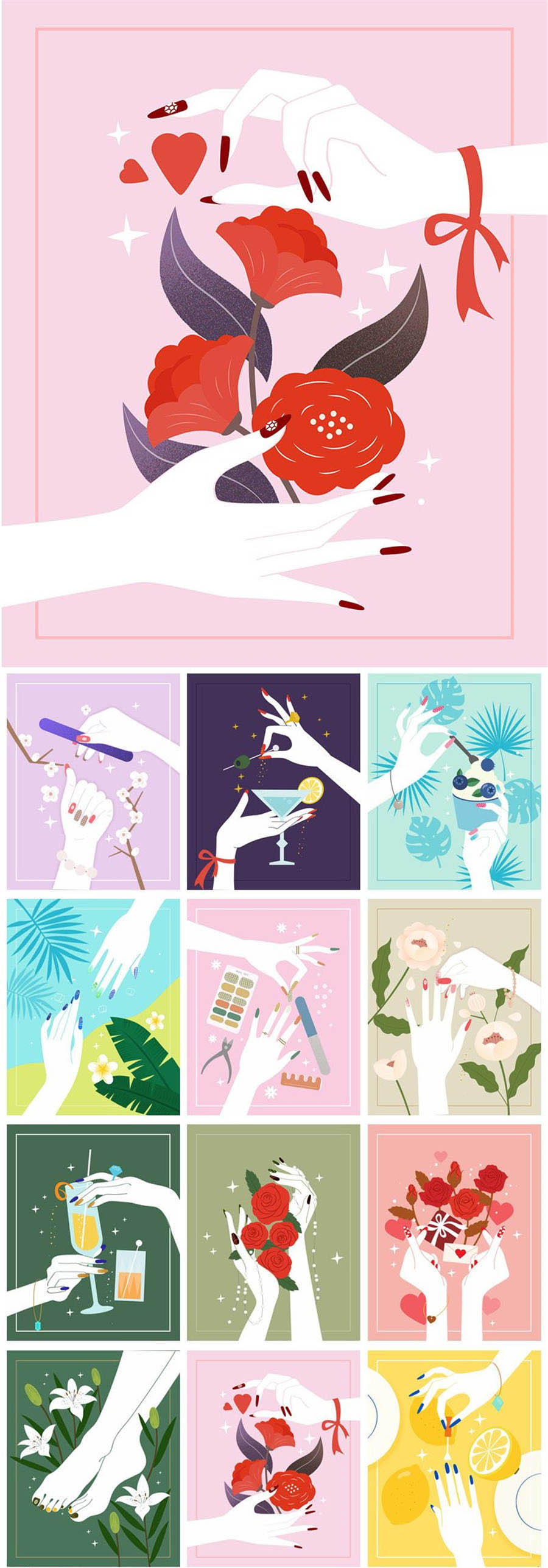 美妆美甲指甲油玫瑰花饮品插图插画创意元素AI海报模板素材设计