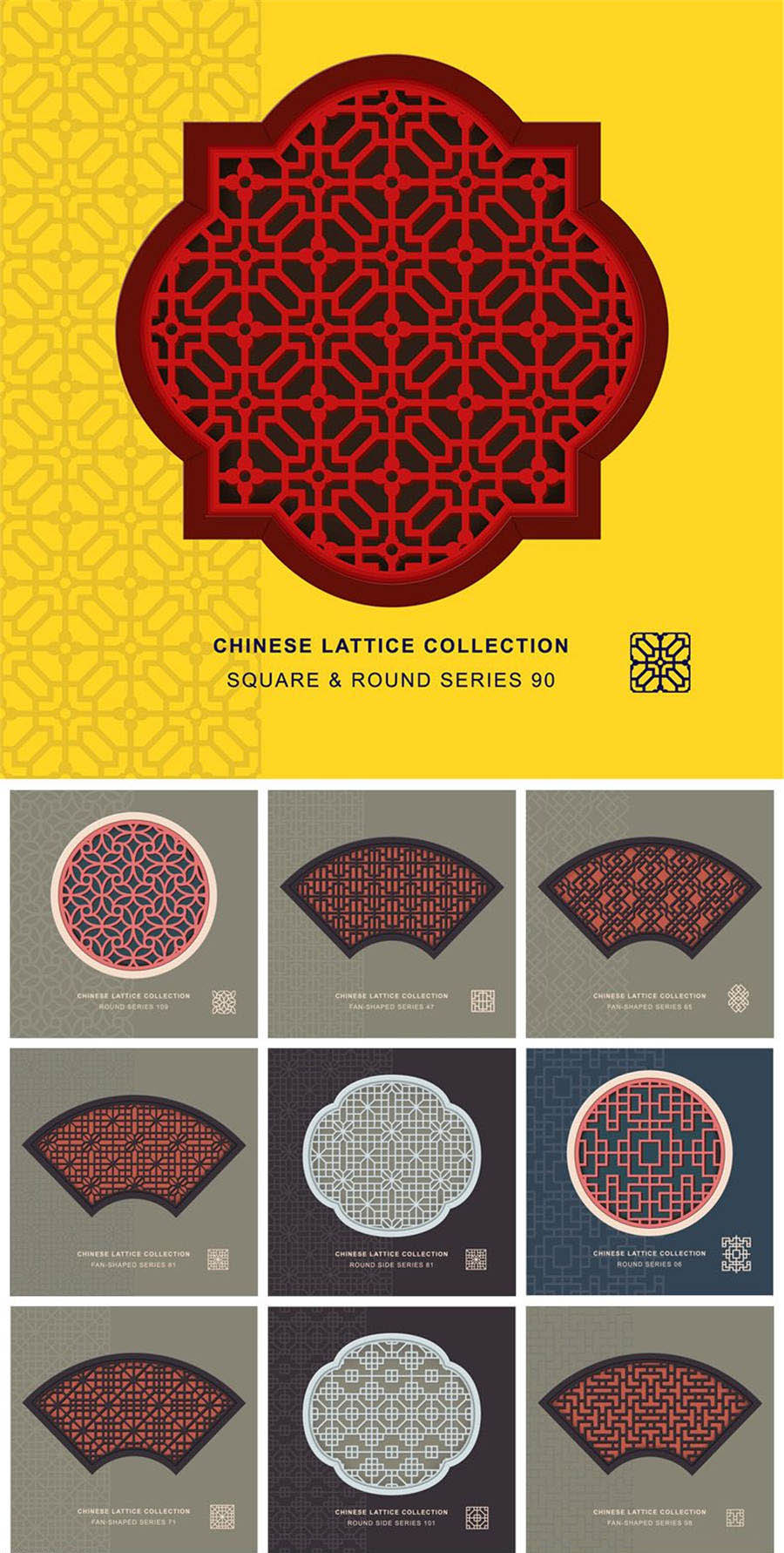中式古典中国风纹理古代窗户门窗花创意元素海报AI模板素材设计