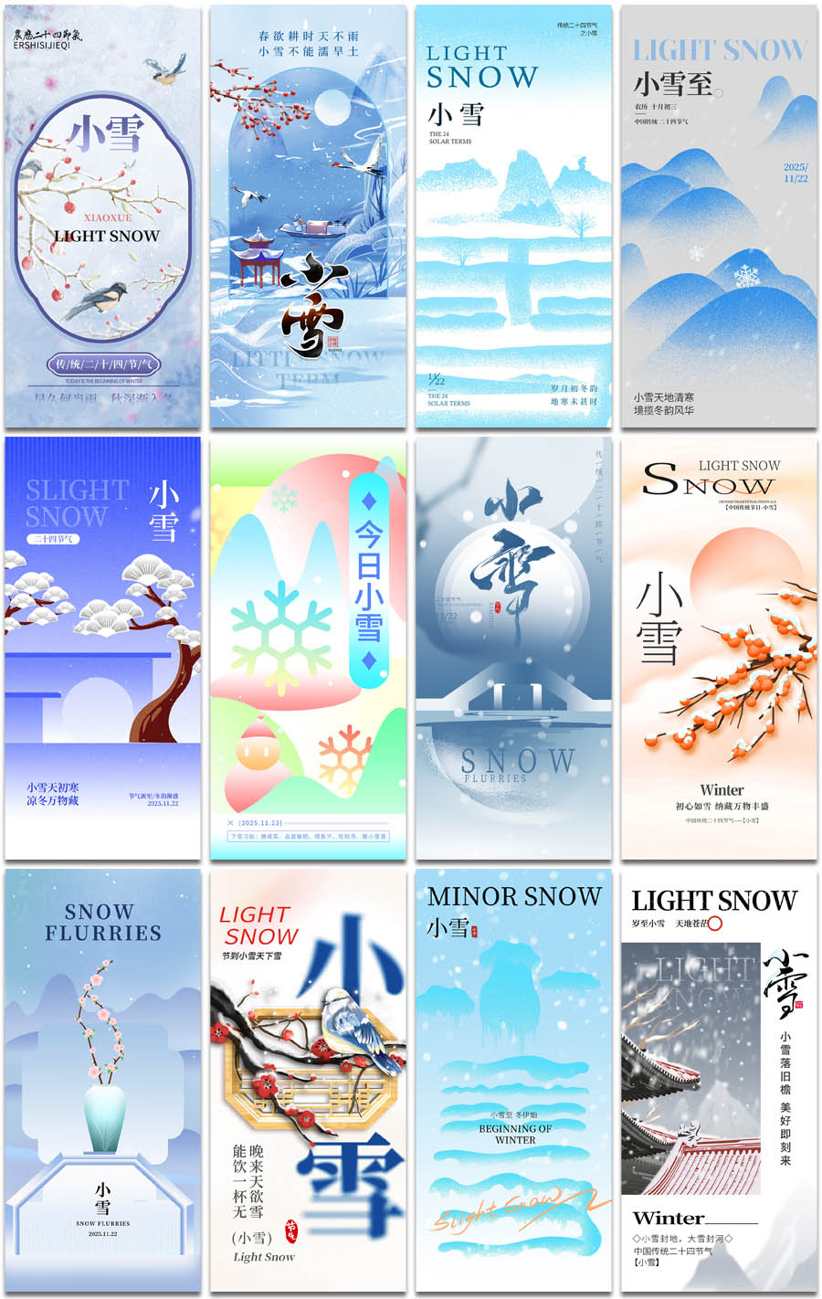 小雪时节冬季11月你好十一月冬日天24节气PSD海报设计元素材模板