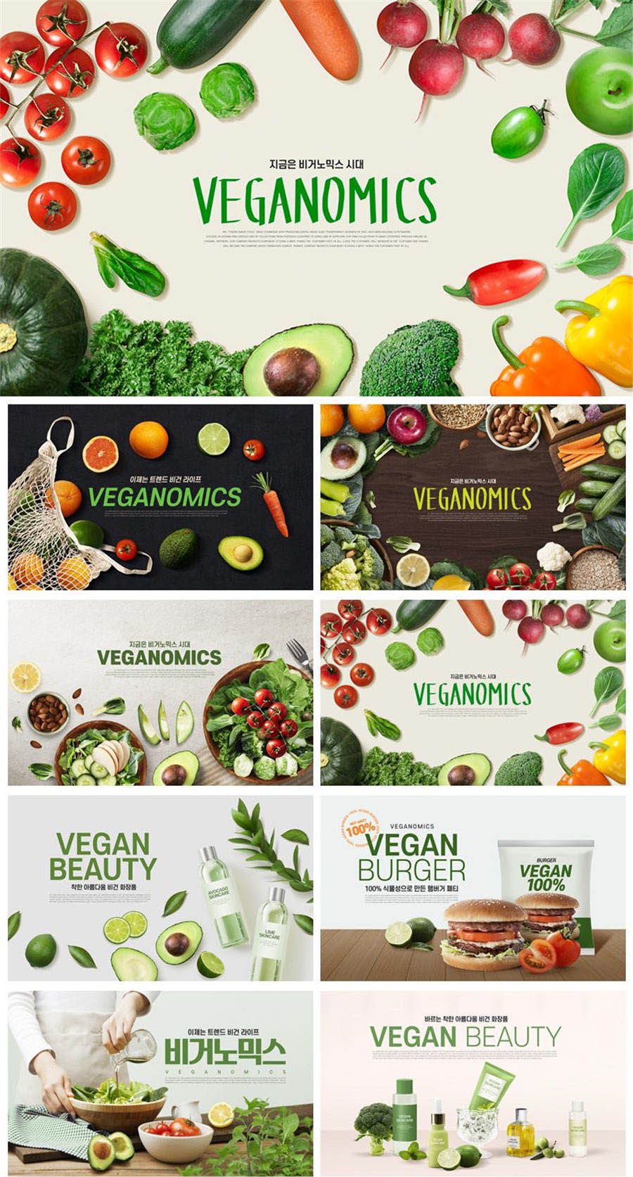8款餐饮美食蔬菜水果海报-2PSD素材