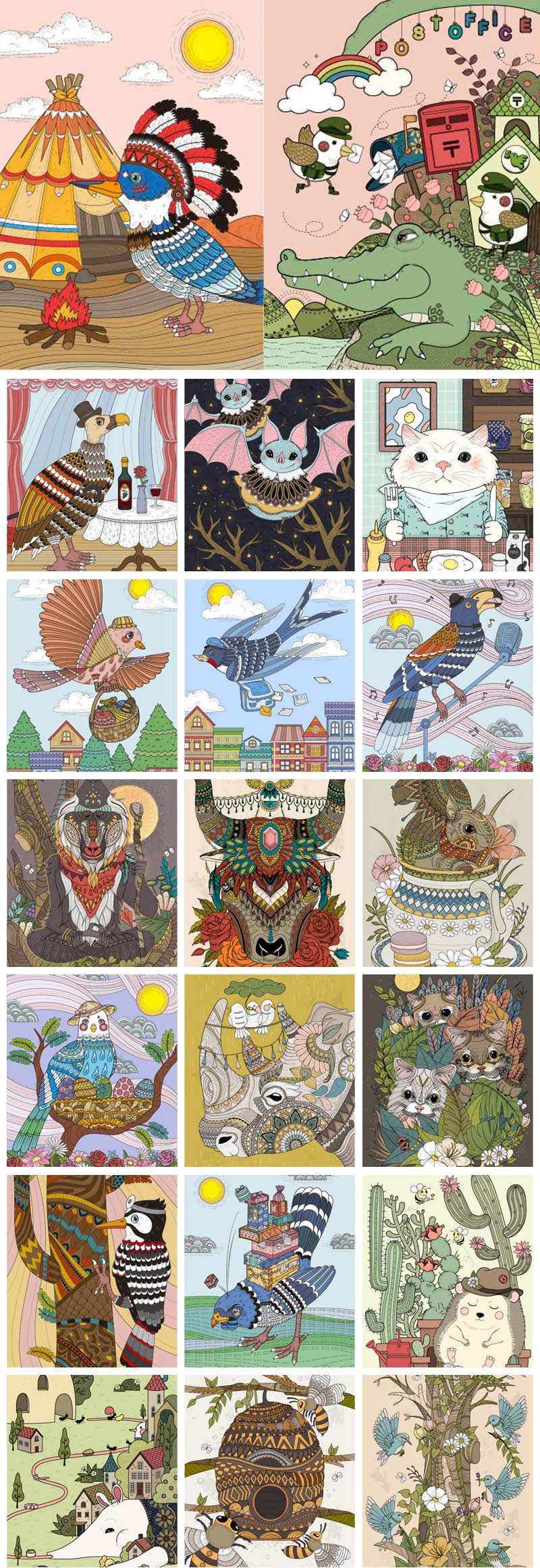 卡通儿童手绘动物鸟禽森林绘本插画图创意元素海报模板素材AI设计