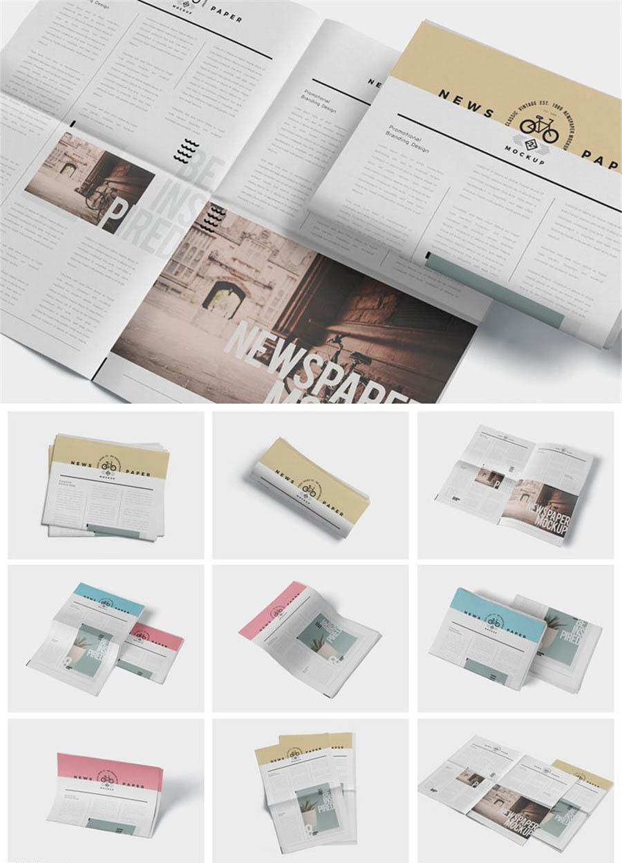 10款折叠报纸报刊单页VI智能样机PSD素材