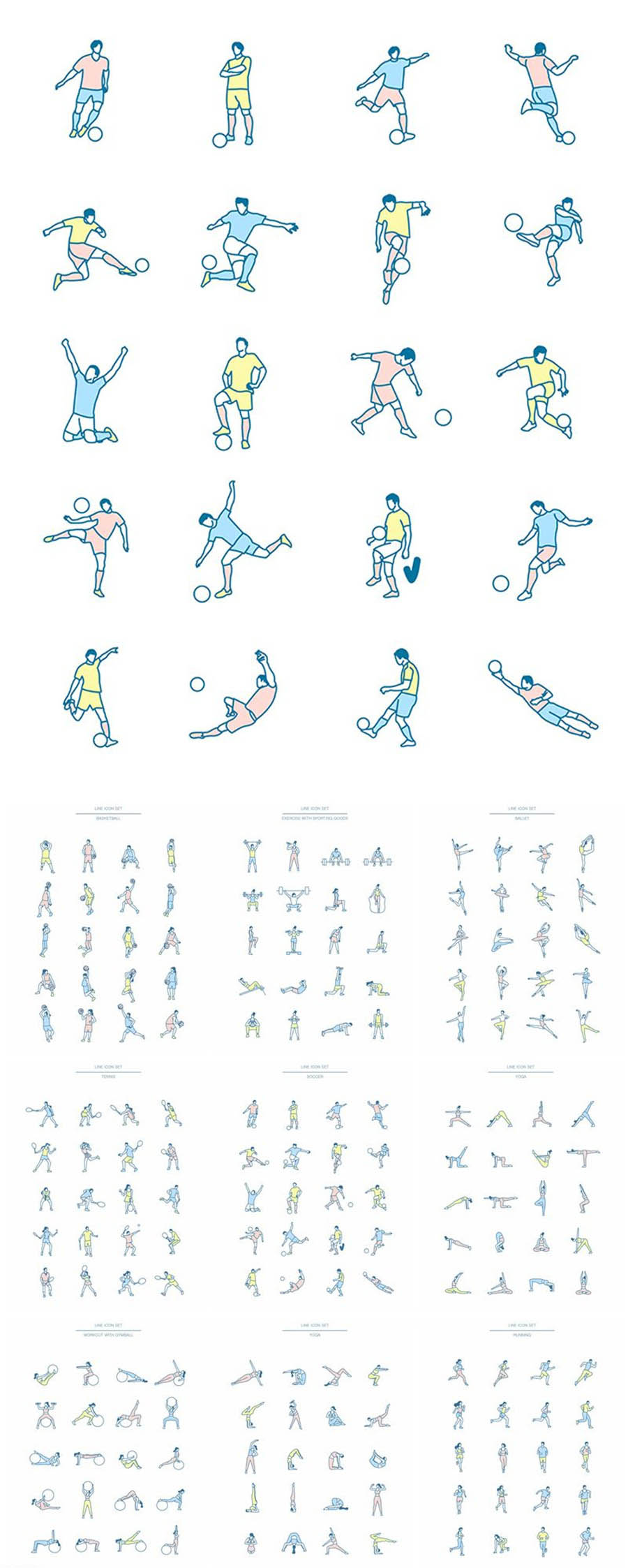 体育运动篮球足球瑜伽体操人物图标创意元素海报模板AI素材设计