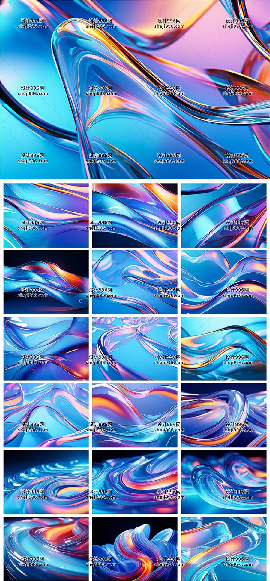 炫丽彩色渐变流体玻璃质感透明背景创意元素海报模板JPG素材设计