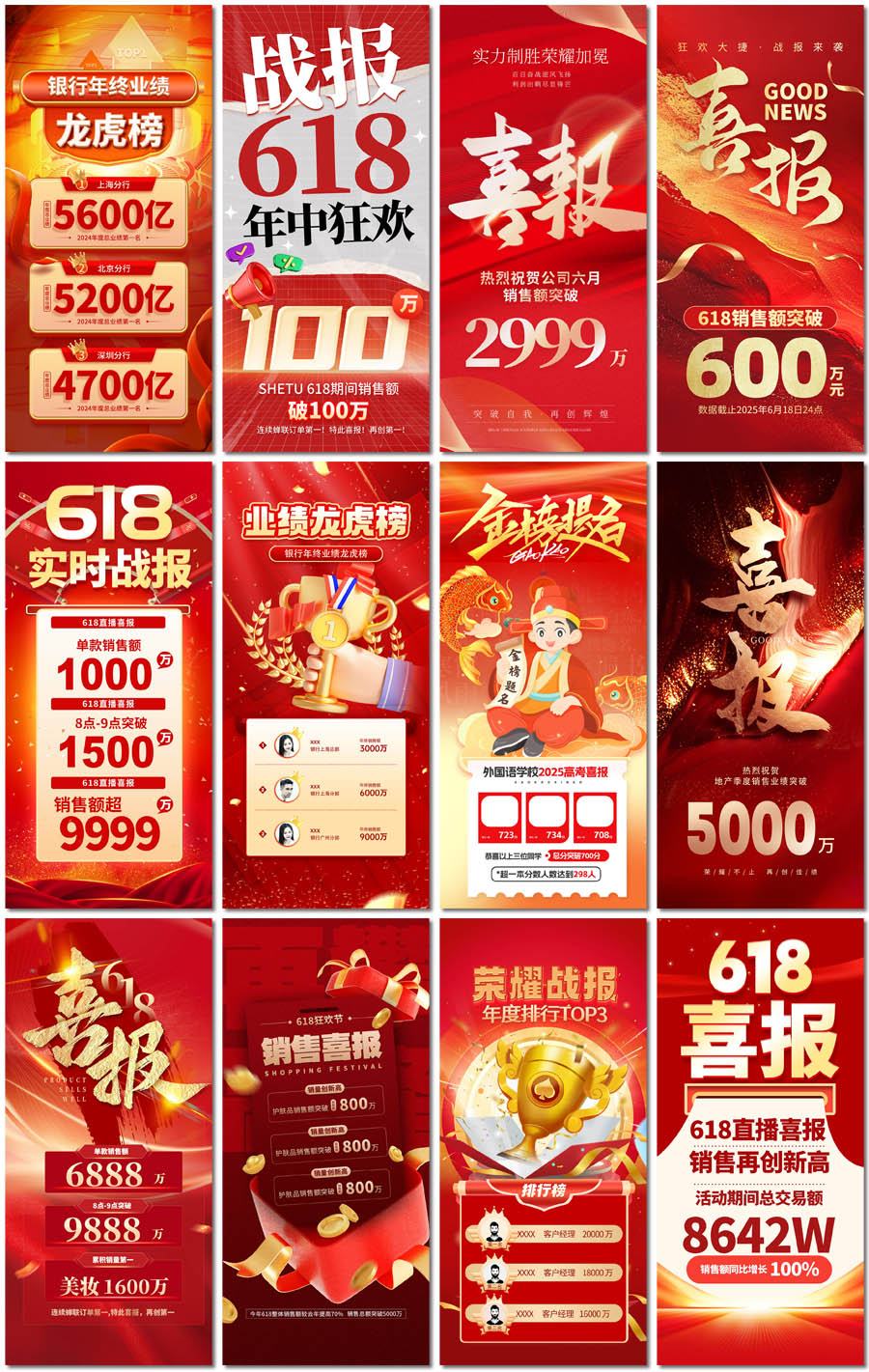 喜报战报销售业绩光荣销冠高考榜龙虎榜单PSD海报设计元素材模板