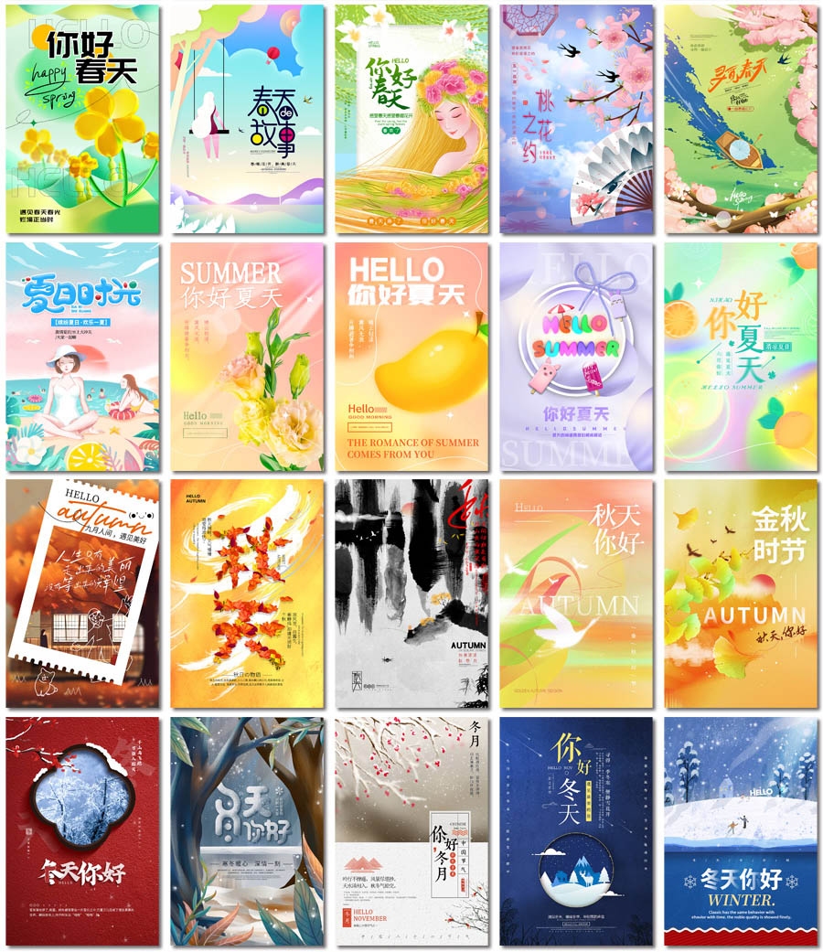 100张四季海报PS格式模板素材设计