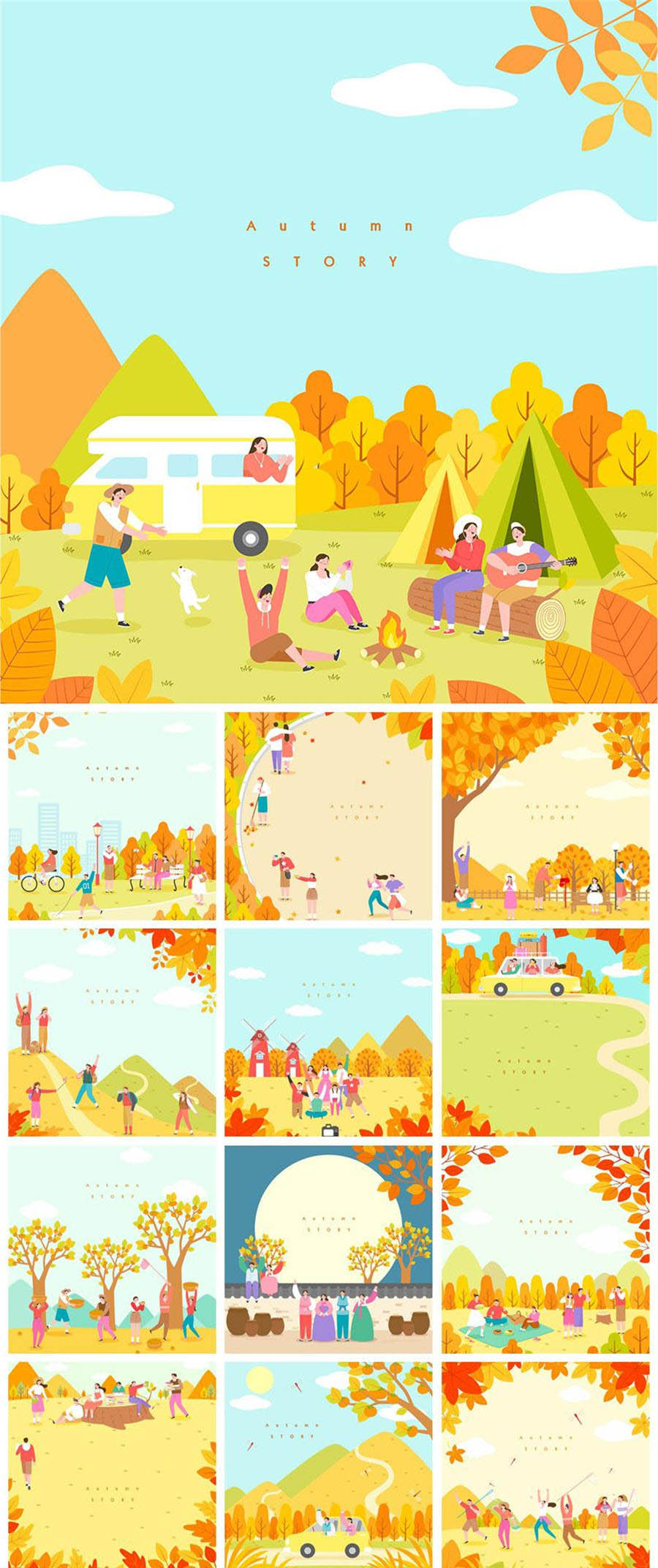 秋天秋季枫叶露营秋游风景景色插画图创意AI元素海报模板素材设计