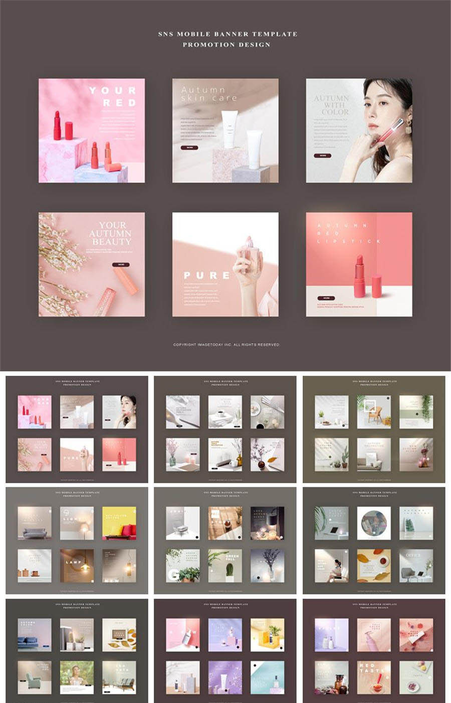 9款化妆品保养品护肤品盆景装修家居网页海报PSD素材
