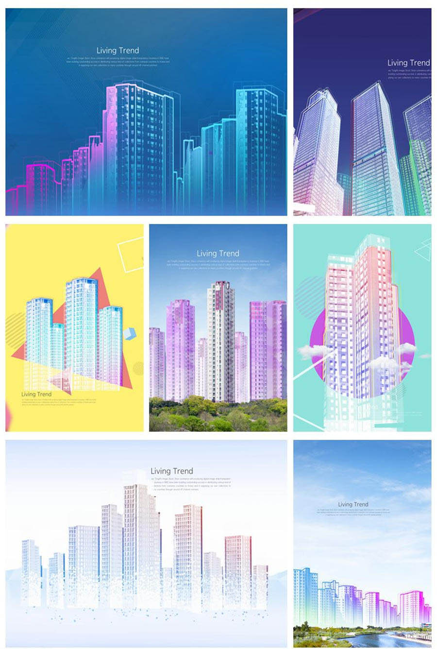 城市大楼大厦房地产楼盘写字楼住宅创意元素海报模板素材PSD设计