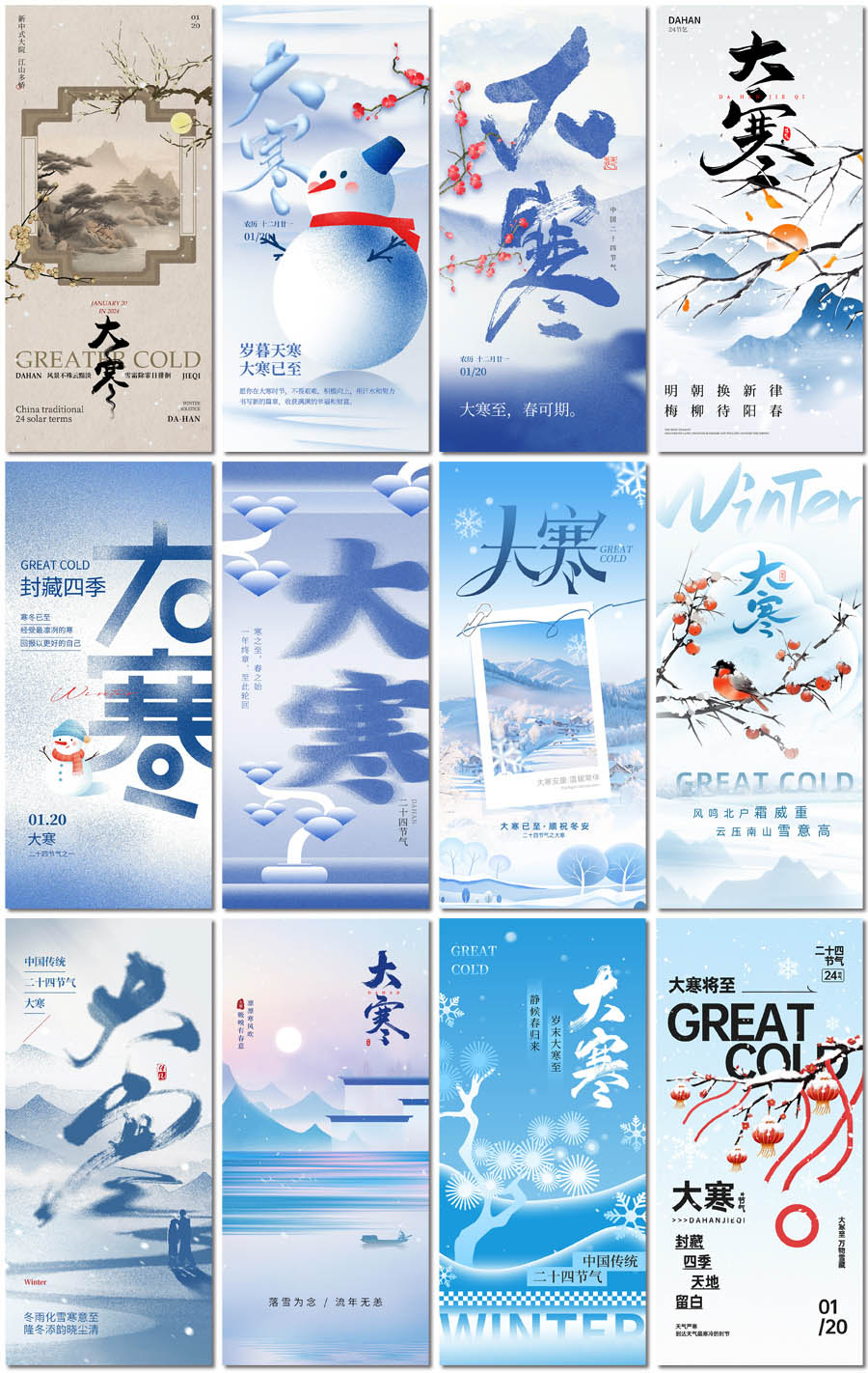 大寒时节冬日1月你好一月冬季冬天24节气PSD海报设计元素材模板