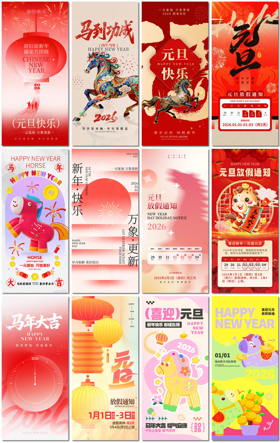 元旦节放假通知2026年跨年夜马年新年春节PSD海报设计元素材模板