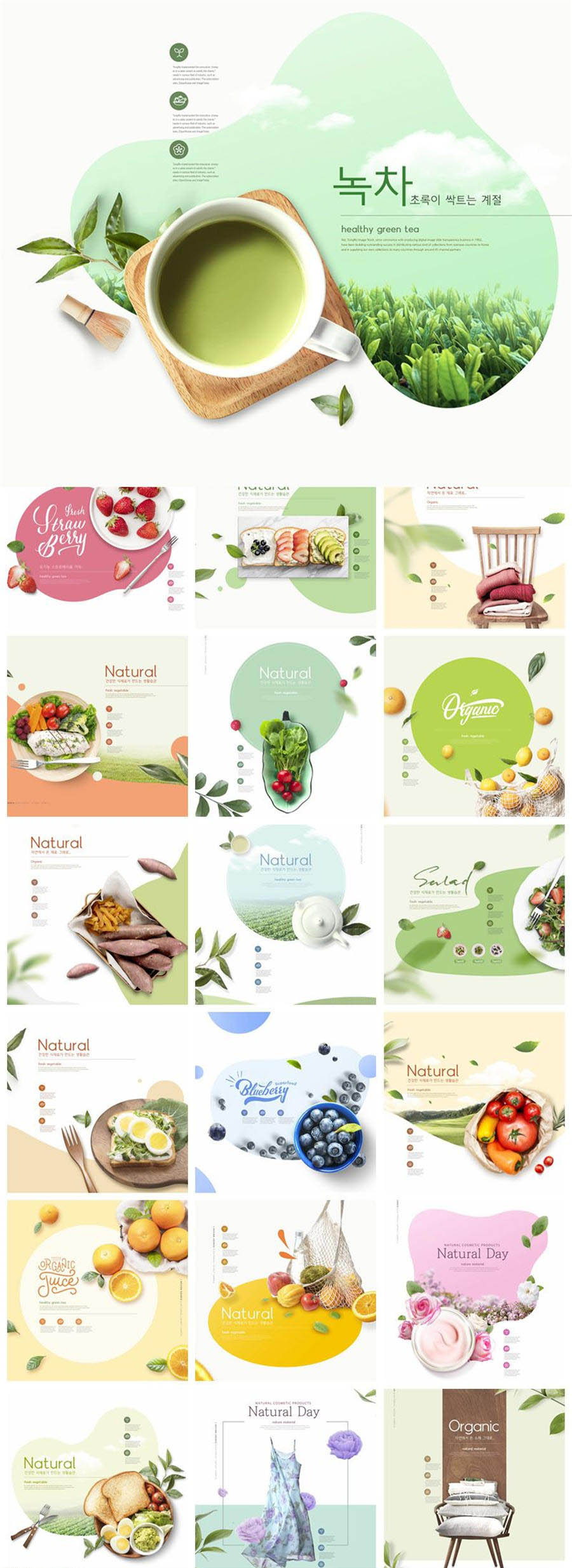 茶叶美食蔬菜水果食材沙拉健康简餐创意PSD元素海报模板素材设计