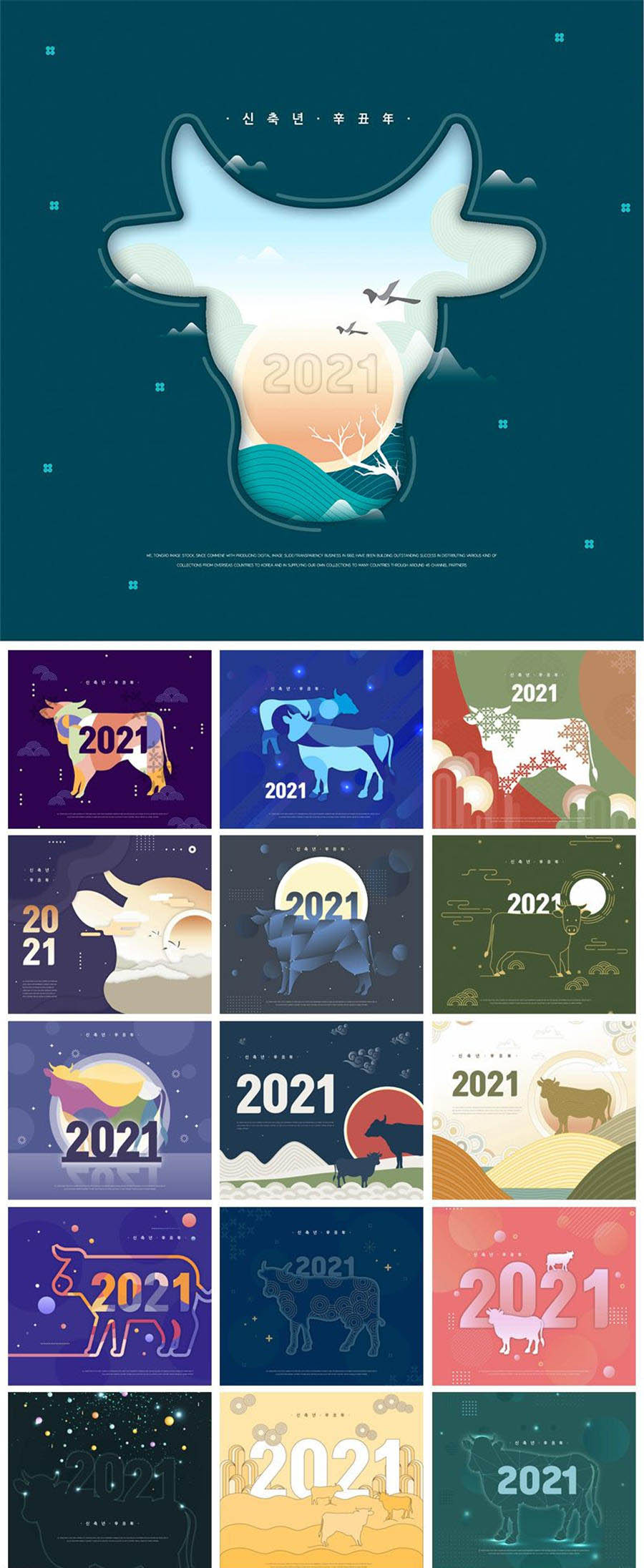 牛年卡通牛2021新年春节国风插图插画创意AI元素海报模板素材设计