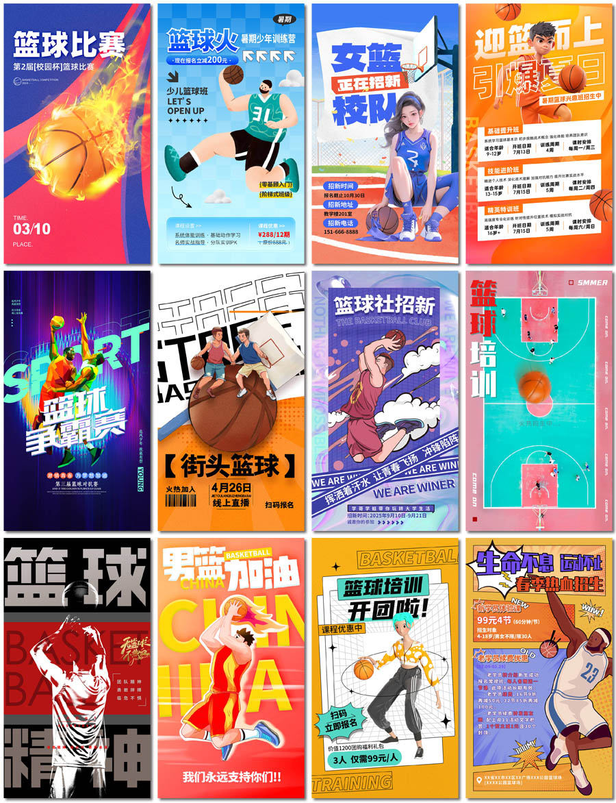 篮球赛体育社团运动会少儿篮球培训班招生PSD海报设计元素材模板