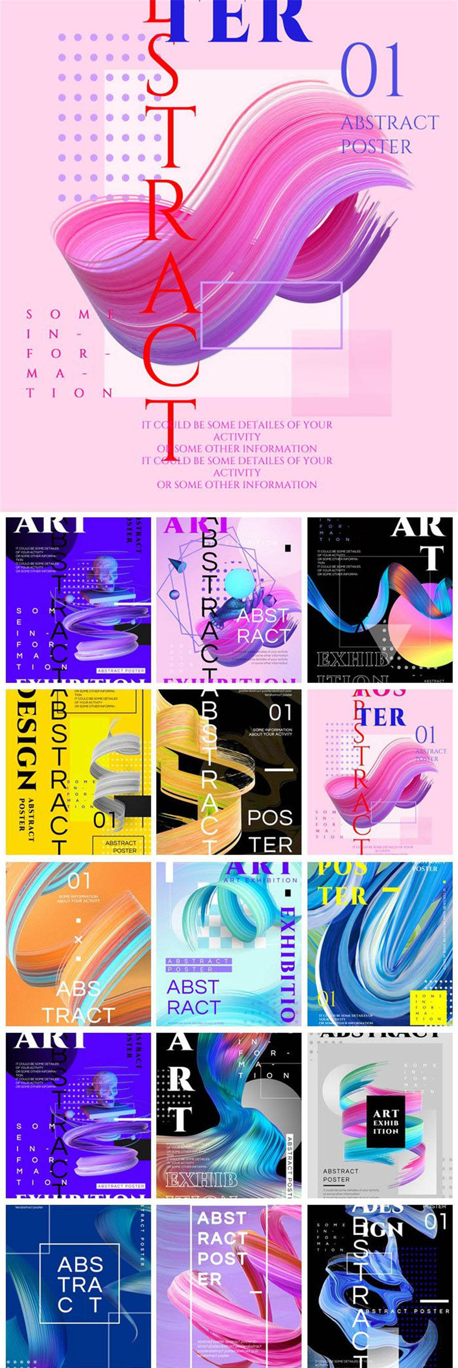 抽象艺术展美术扭曲流体渐变背景创意元素海报模板素材PSD设计