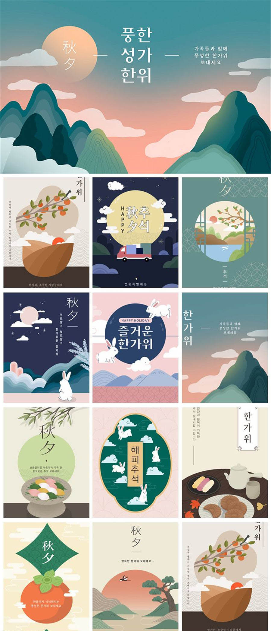 秋夕中秋节山水兔子秋天插画图背景创意元素PSD海报模板素材设计