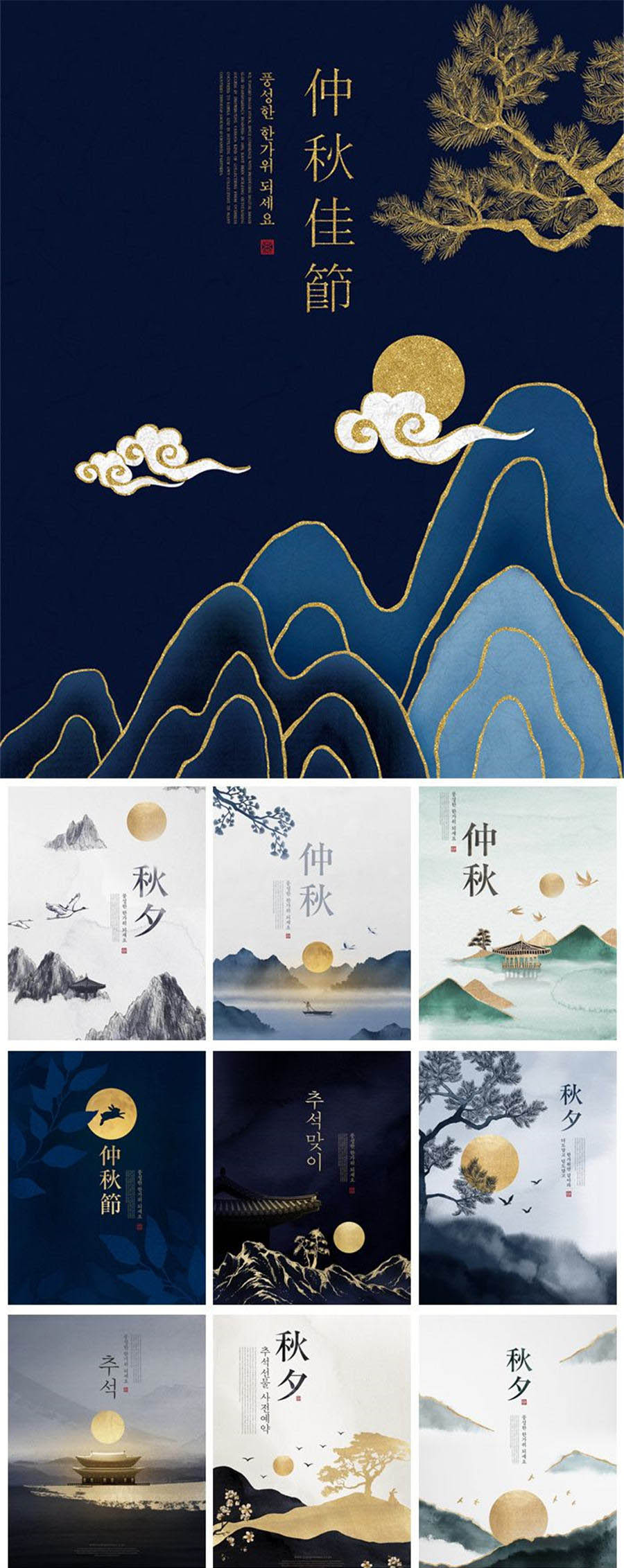 10款中式中国风月亮水墨中秋节海报-2PSD素材