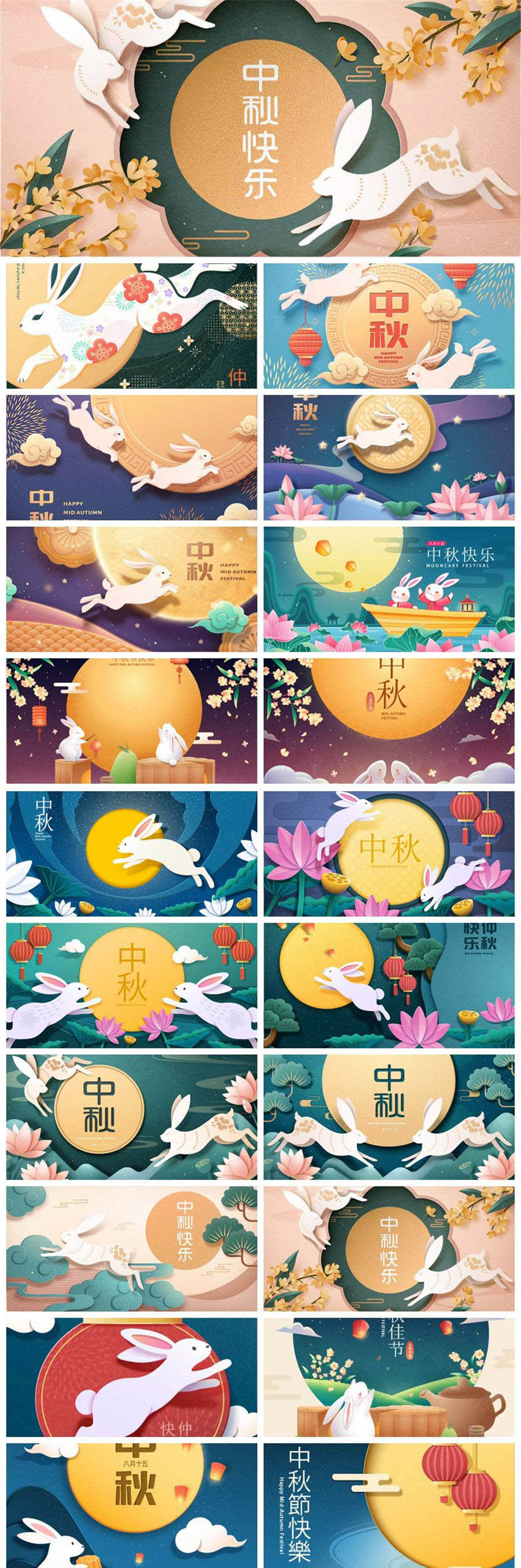 20款中秋节月饼月亮兔子中式插画-3AI素材