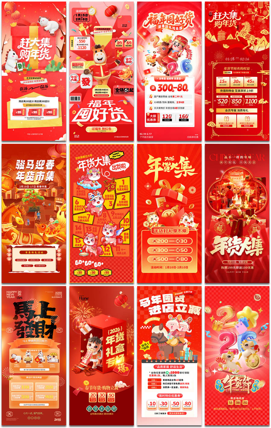 年货节年终春节集市年货市集庙会盛典坚果PSD海报设计元素材模板