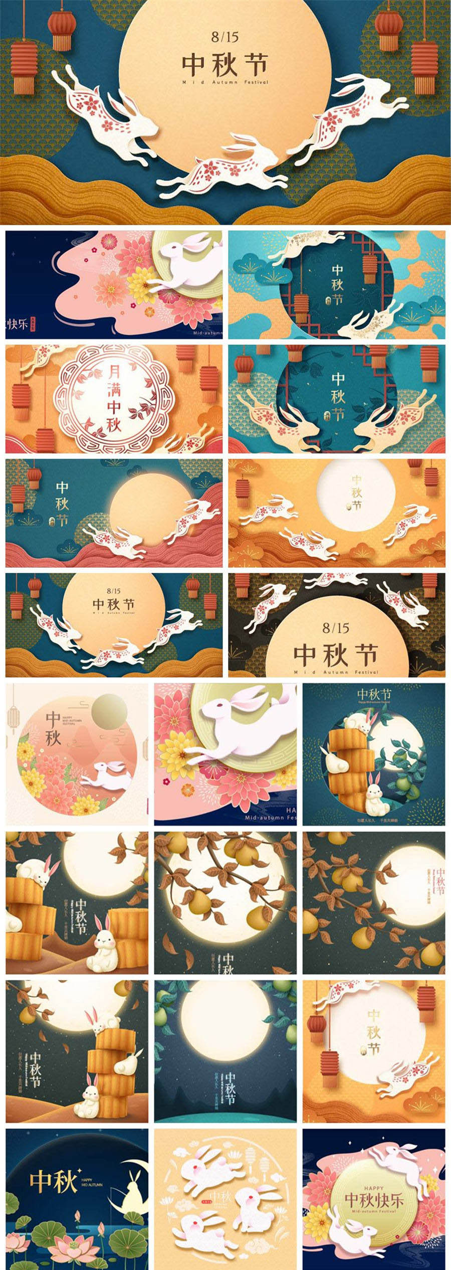 20款中秋节月饼月亮兔子中式插画-2AI素材