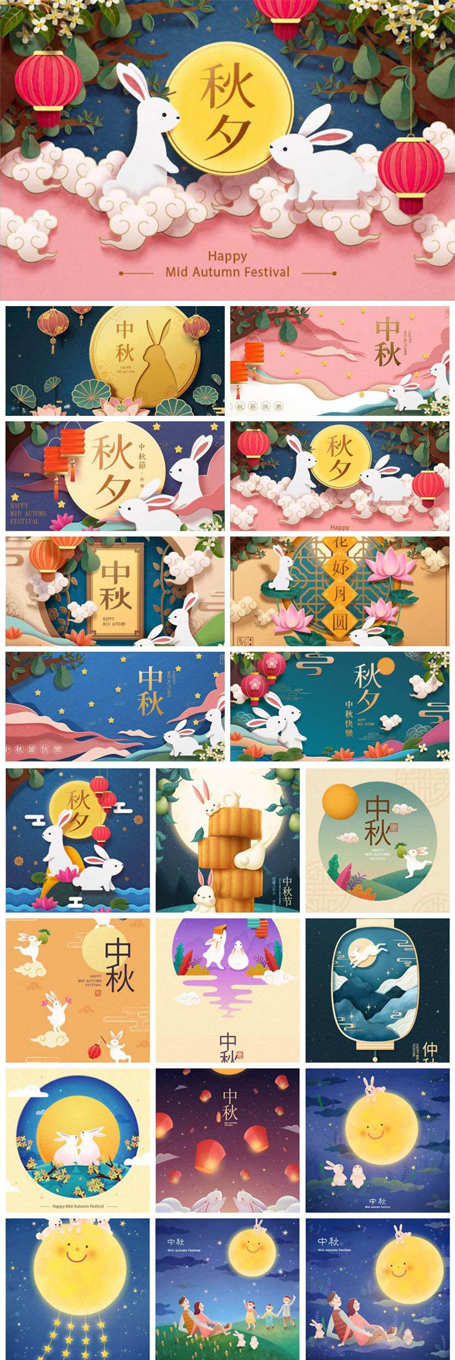 20款中秋节月饼月亮兔子中式插画-1AI素材